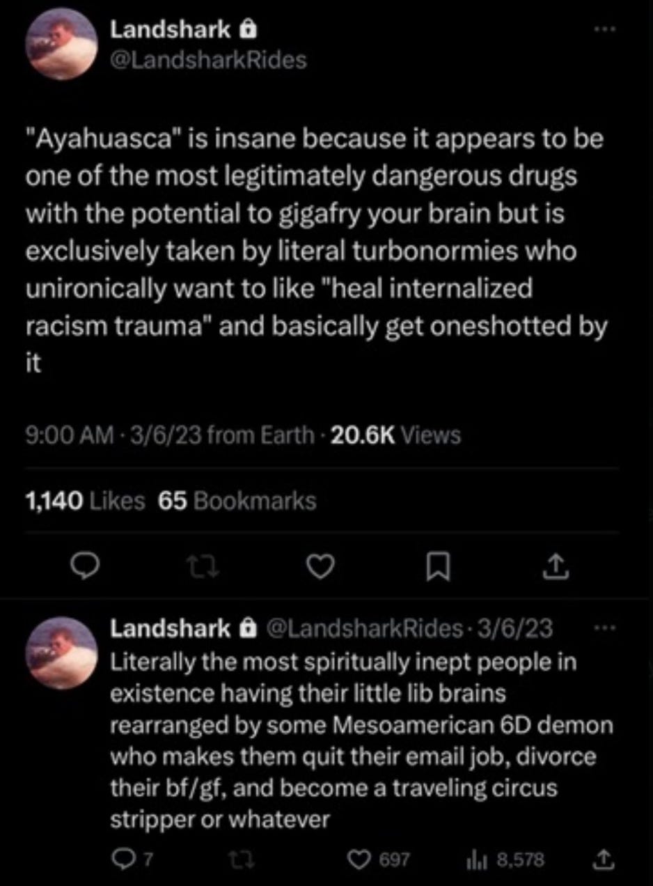 One of the downstream effects of prohibition is a deep insecurity among those who have seen through the propaganda and discovered for themselves that some drugs—most drugs—are good, actually. Once the veil on the drug war has been lifted and you’ve seen the lies for what they are, it’s impossible to un-see just how ruthlessly we’ve been deceived, just how much unnecessary blood has been spilled, families ripped apart, bodies and souls left to rot in cages over lies.